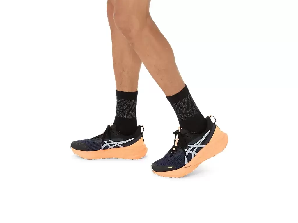 The knitted graphic print is inspired by the heritage ASICS® all-over print and ASICS® stripes. The sock also features Japanese elements that embodies our Japanese roots.