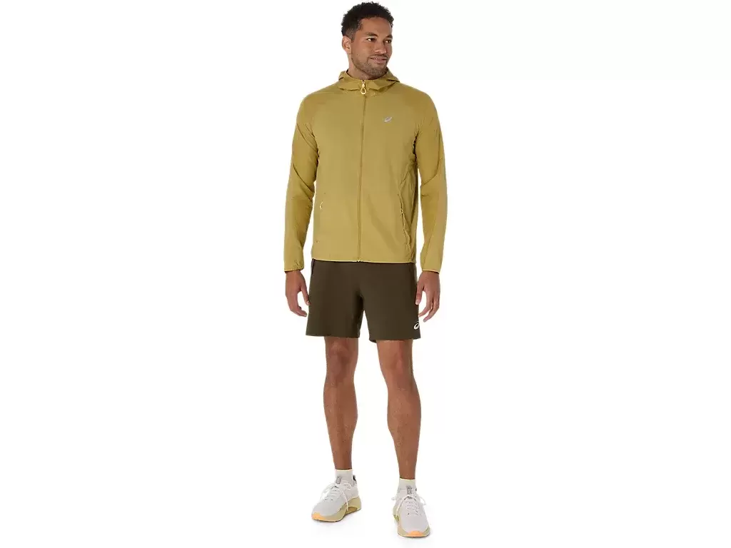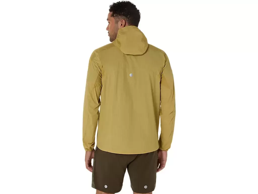 It’s a versatile jacket designed to help shield against rain and wind and can be easily removed and packed into the side pocket during your run.