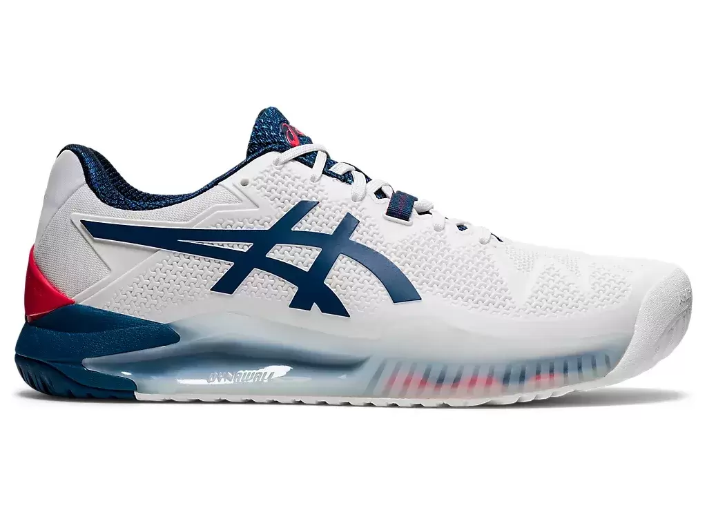The GEL-RESOLUTION® 8 (Wide) tennis shoe promotes a responsive stride with a close-to-the-court feel, while offering more space in its interior for those with wider feet. The FLEXION FIT® upper provides form-fitting support with the integration of DYNAWALL™ technology, which offers added midfoot stability during lateral movements and coast-to-coast coverage. Implementing a torque control feature in the heel counter, this shoe is also designed to help maintain a locked in feel during quick transitions. Recognized for its GEL® technology based cushioning in the forefoot and rearfoot, this shoe significantly reduces the impact of shock from abrupt stop and go movements on court. Additionally, the model also incorporates an AHAR® compound in the outsole that works in conjunction with the PGUARD™ toe protector to increase traction on court and reduce the overall level of wear. Creating an accelerated response with a natural close-to-the-ground feel, the GEL-RESOLUTION® 8 (Wide) tennis shoe helps you approach your matches with confidence.