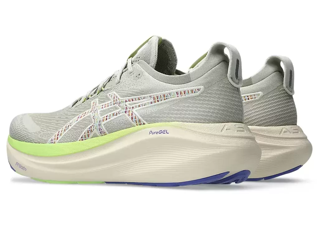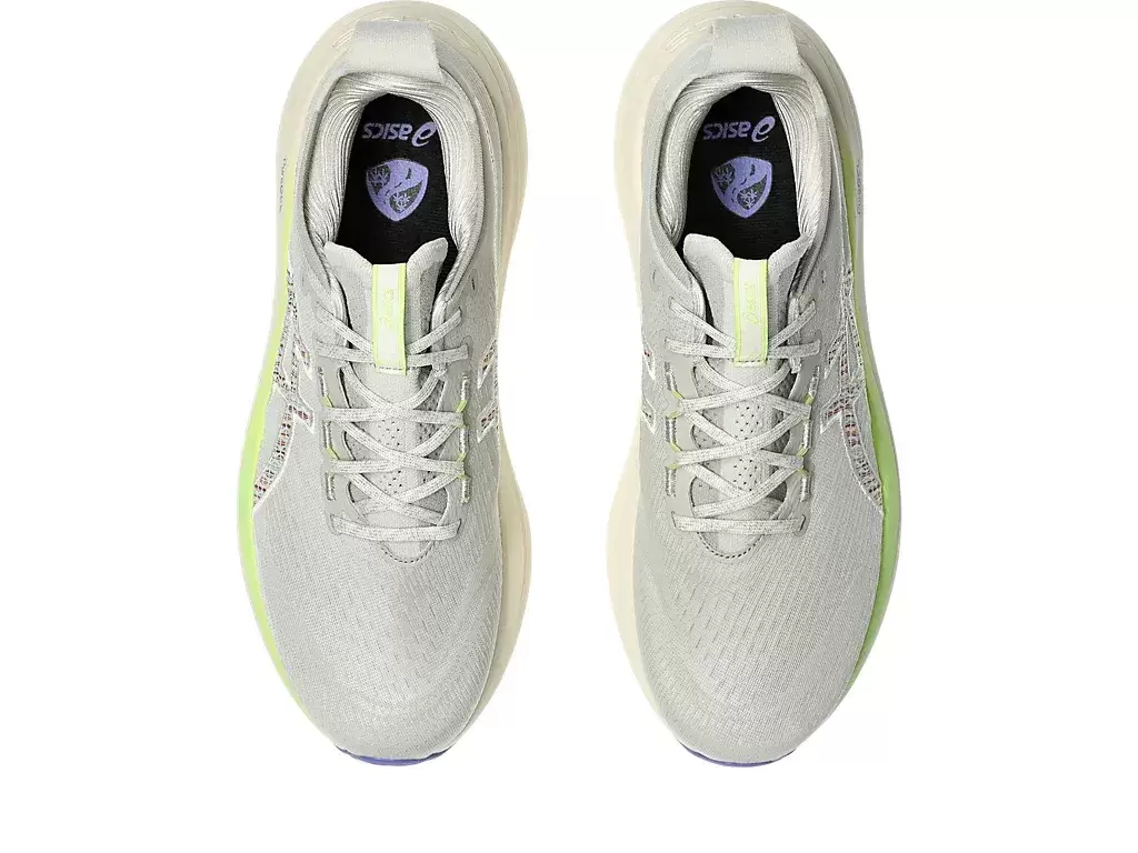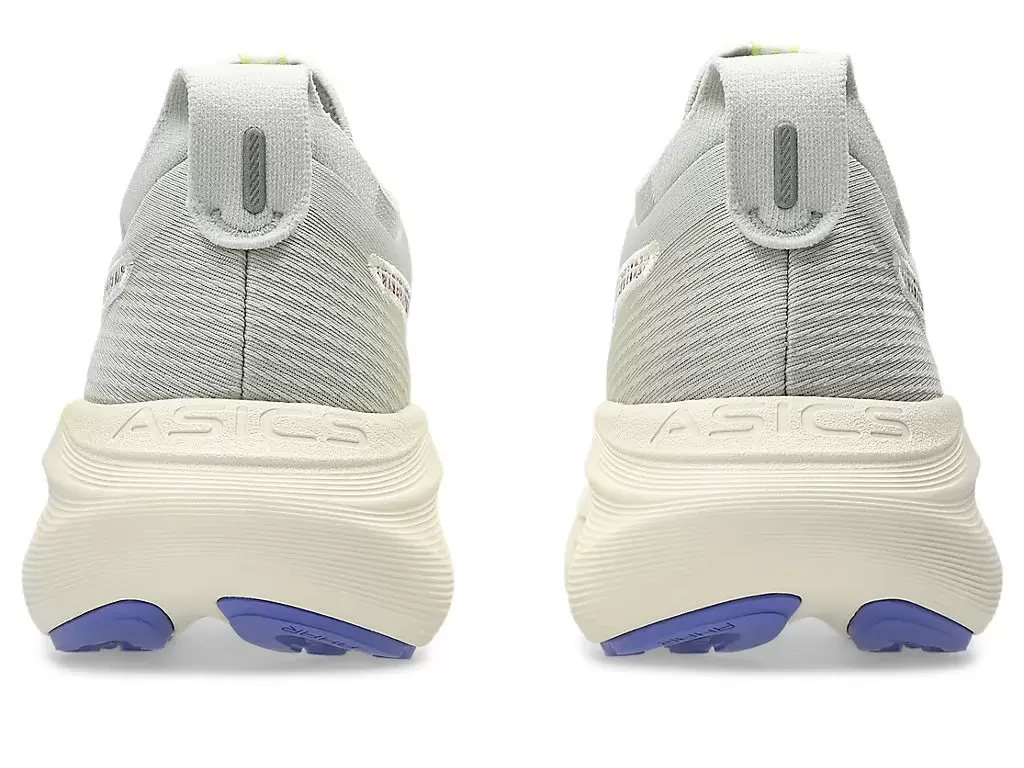 The GEL-NIMBUS® 27 NATURE BATHING™ TR shoe’s soft cushioning properties help you feel like you’re landing on clouds. This design is revamped to help create a softer and smoother running experience. Its colorway draws inspiration from tropical seaside landscape elements, like waves, driftwood, rocks, and seashells.