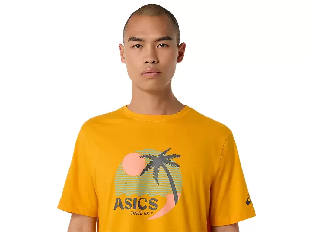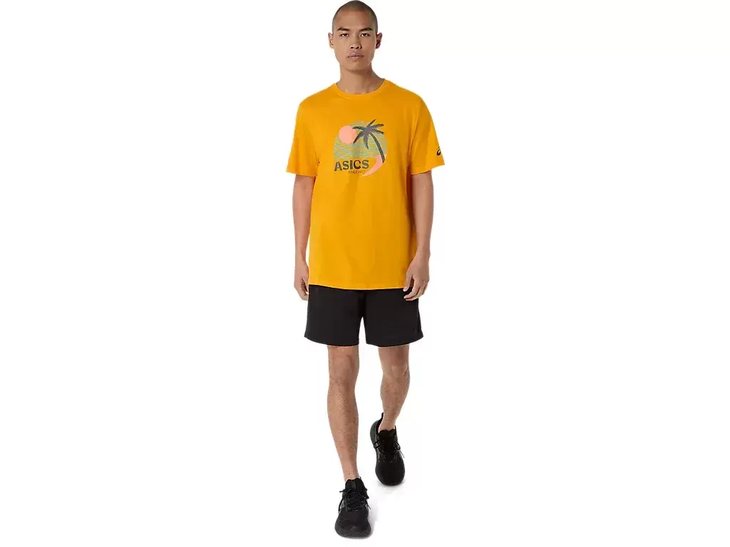 This comfortable knit short sleeve tee takes inspiration from sunny beaches. The front graphic features various coastal elements that are complemented with vibrant colors.