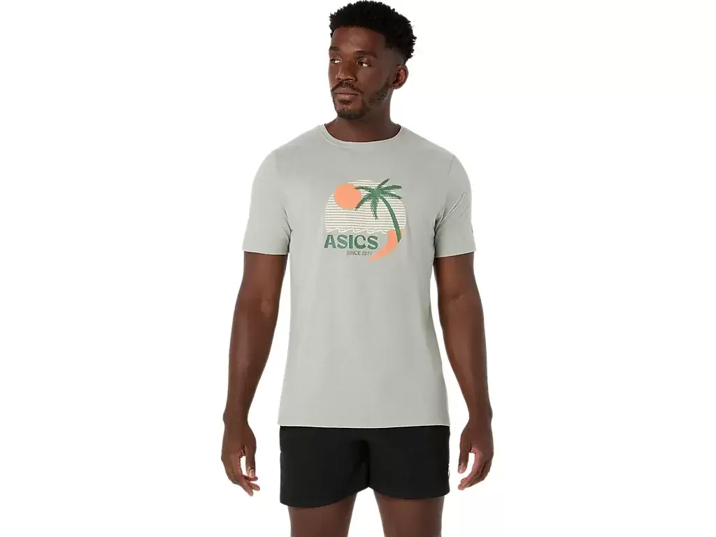 This comfortable knit short sleeve tee takes inspiration from sunny beaches. The front graphic features various coastal elements that are complemented with vibrant colors.