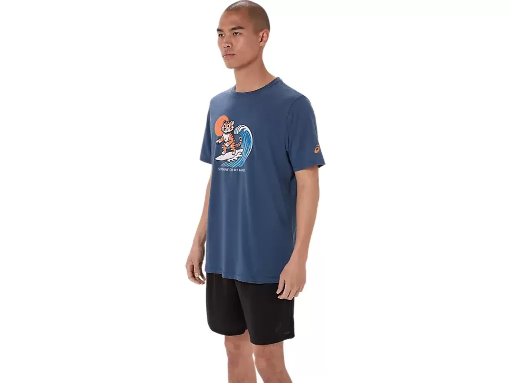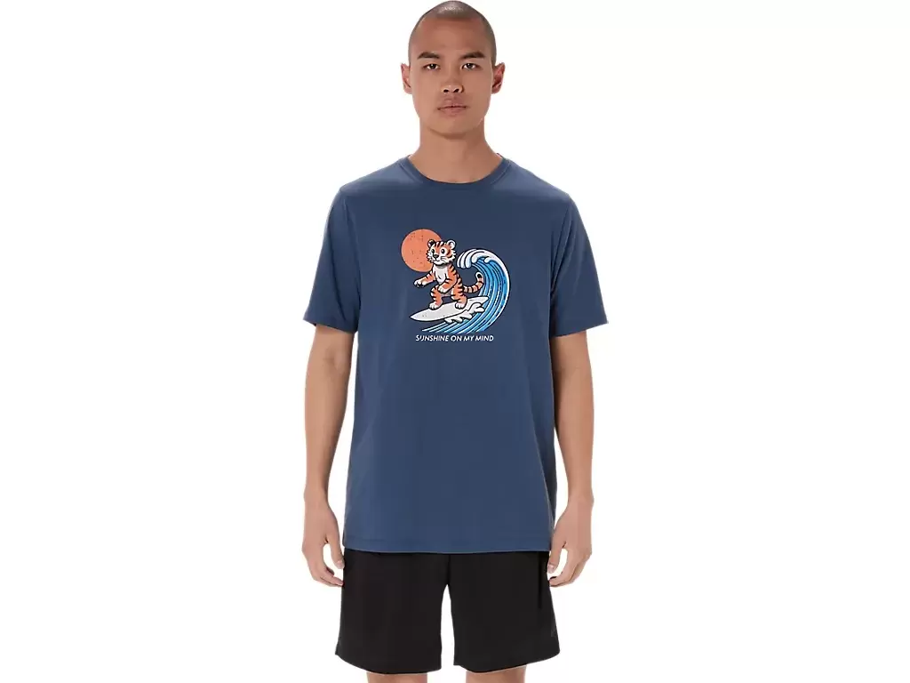 This comfortable knit short sleeve tee takes inspiration from the beach. The front graphic features a tiger surfing, while the phrase, “”SUNSHINE ON MY MIND”” appears underneath.