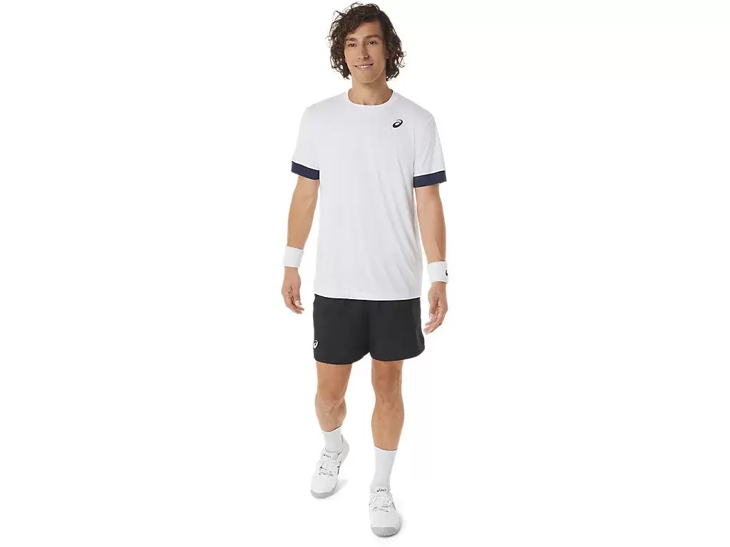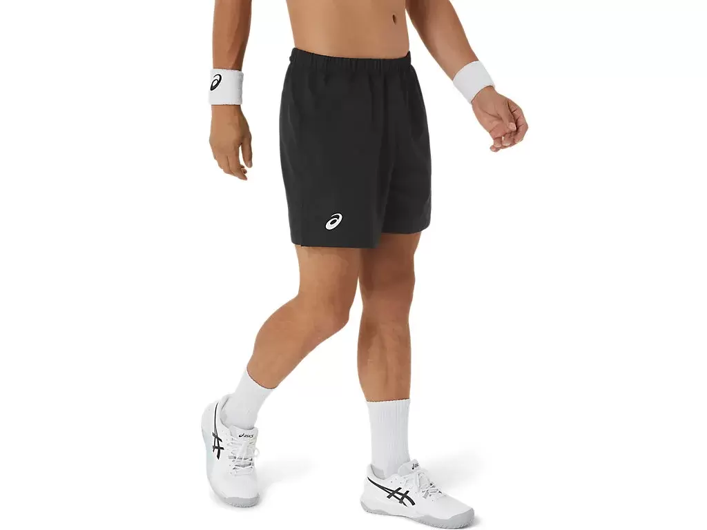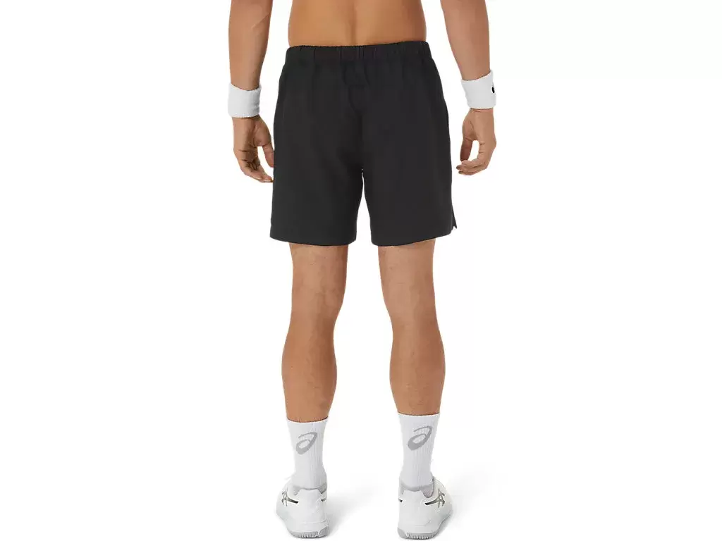 The COURT 7IN SHORT features mesh paneling along the waistband to improve breathability, while the lightweight woven fabric improves moisture management properties.