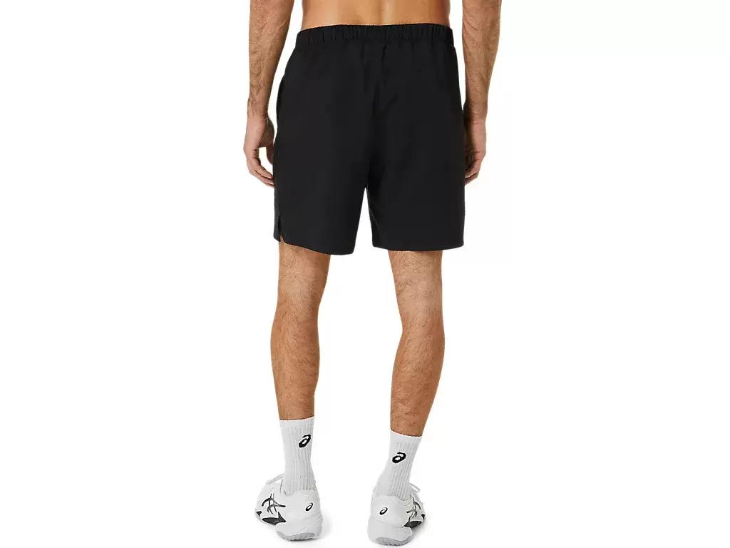 The COURT 9IN SHORT features mesh paneling along the waistband to improve breathability, while the lightweight woven fabric improves moisture management properties.