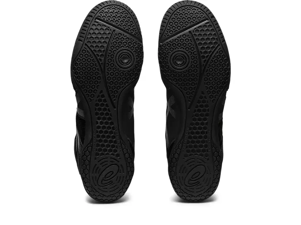 Functional for improving traction on mat surfaces, the shoe also incorporates flexion grooves in the outsole for better flexibility.