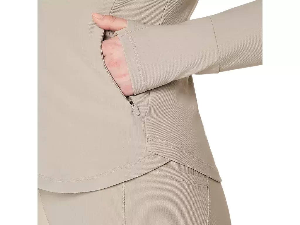 Our WOMEN’S RIB JACKET is extra comfortable and is truly versatile. Whether you are going to or coming from your favorite workout, this jacket will help keep you comfortable and looking great. The fabric is a great weight and stretchy to move with you. It also features zippered side hand pockets for convenient storage.