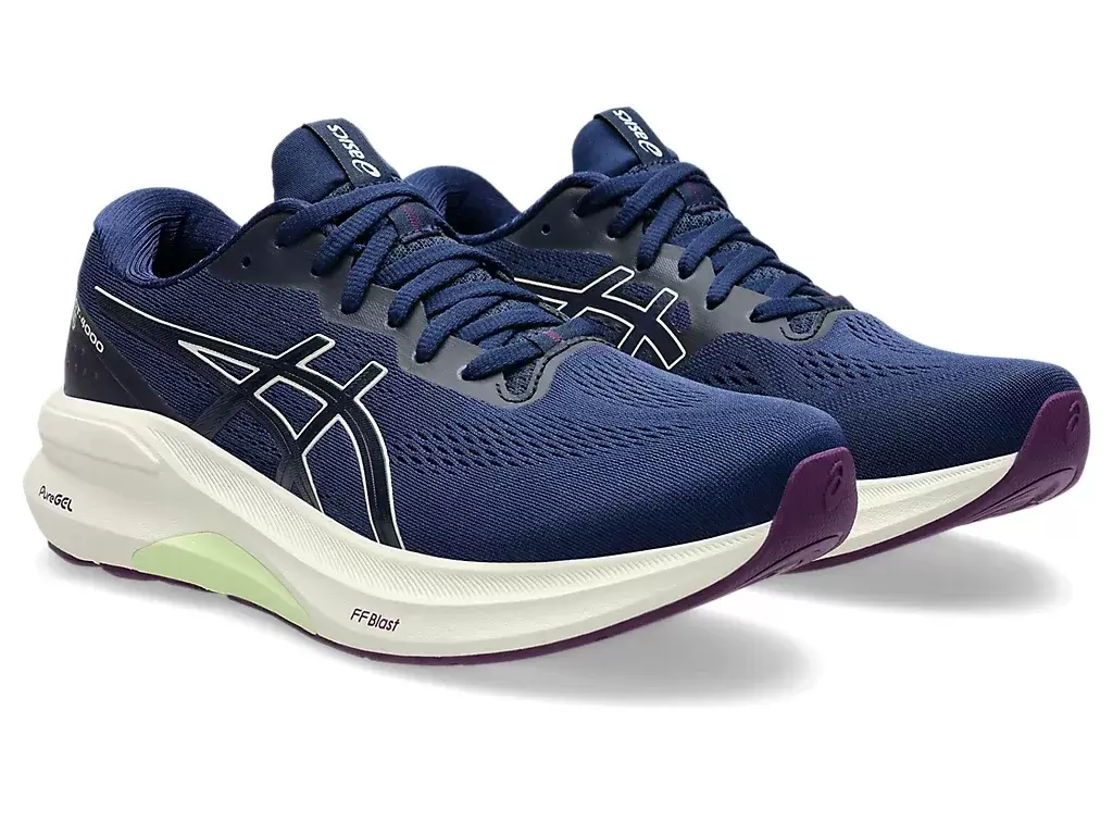 The midsole implements a FF BLAST™ cushioning unit and PureGEL™ technology. These features help provide a more energized toe-off with cloud-like softness underfoot.