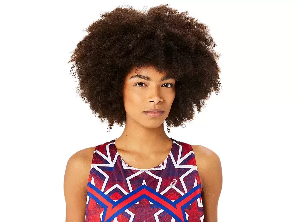 The singlet features iconic symbols and is colored to represent three nations, Japan, France and the US.