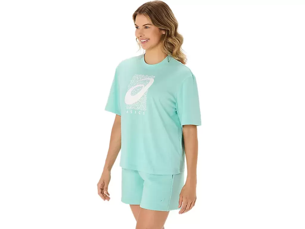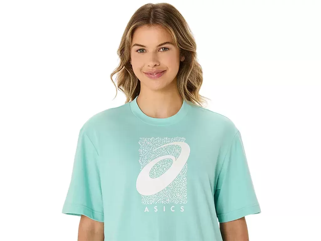 The top is also complimented with a seasonal ASICS® Spiral graphic, a cropped length, relaxed fit design, and side slits for ease of movement.