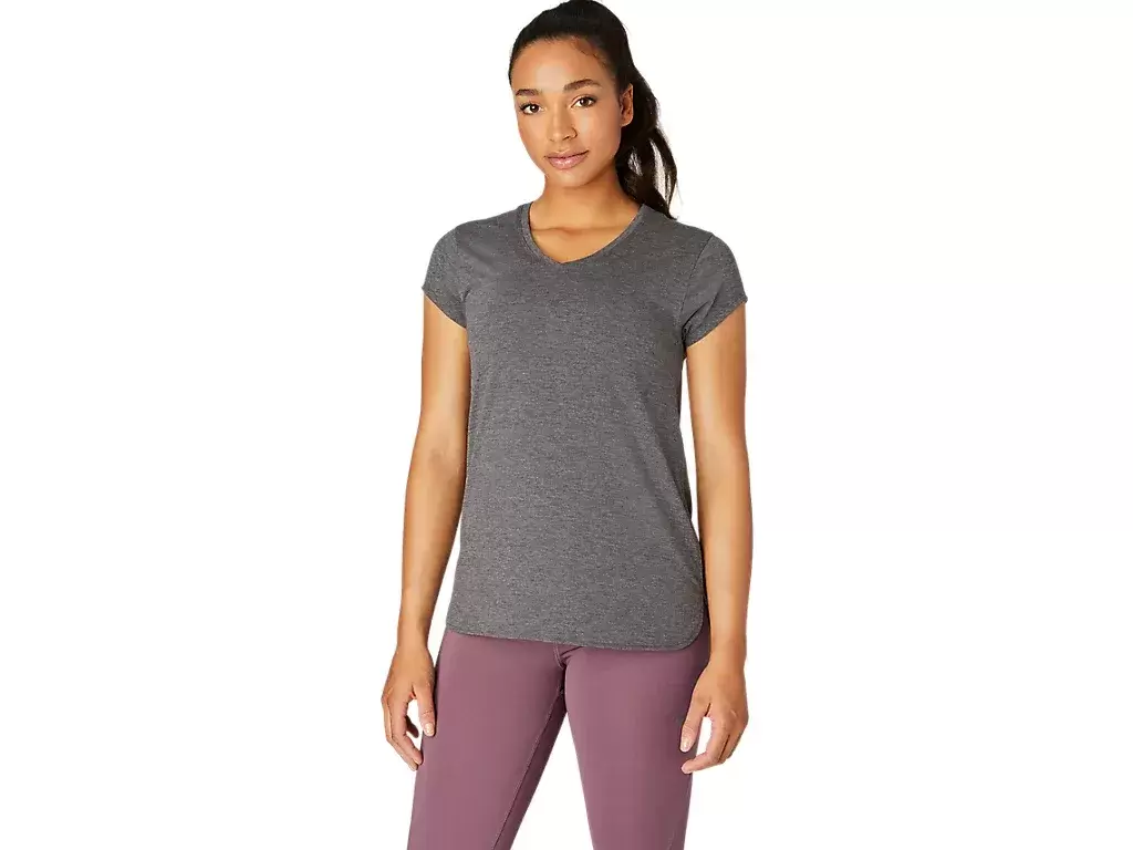 This short sleeve V-neck top is designed to provide a sleek next to the skin feel. It features a comfortable knit fabric that’s paired with forward side seams to improve freedom of movement.