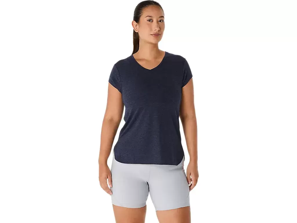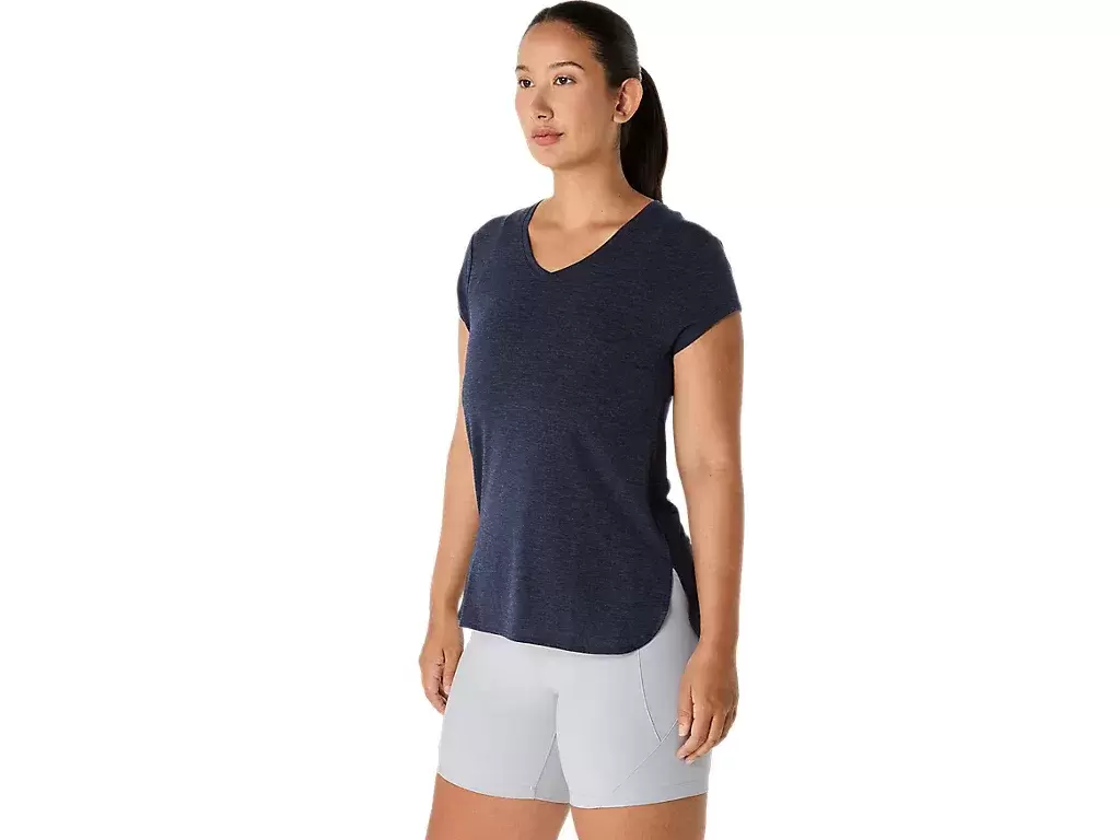 This short sleeve V-neck top is designed to provide a sleek next to the skin feel. It features a comfortable knit fabric that’s paired with forward side seams to improve freedom of movement.